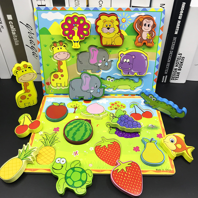 Children's Early Education Stereo Puzzle Benefit Intelligence Toy Baby 1234 Years Old Fruit Animal Cognition Building Block Hand Grab