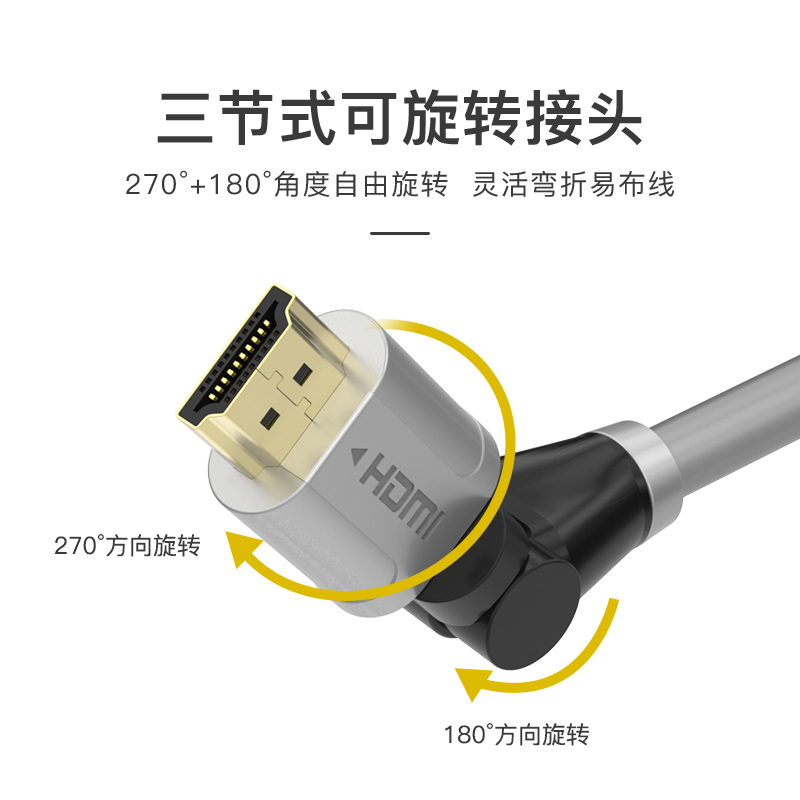 Akihabara HDMI cable elbow cable 2 0 version 3D rotatable 180deg 360 degrees turn right angle hdmi4K HD home laptop network set-top box Connect wall-mounted TV