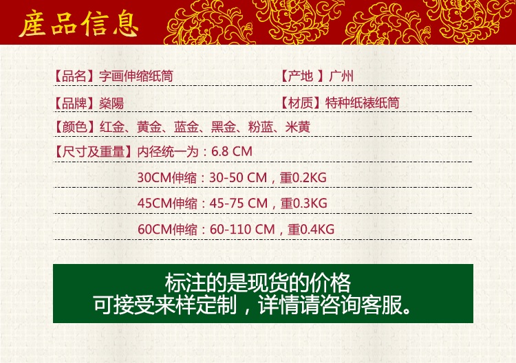 10 calligraphy and painting paper tube Calligraphy packaging reel box Storage collection tube Universal telescopic brocade box Calligraphy and painting box