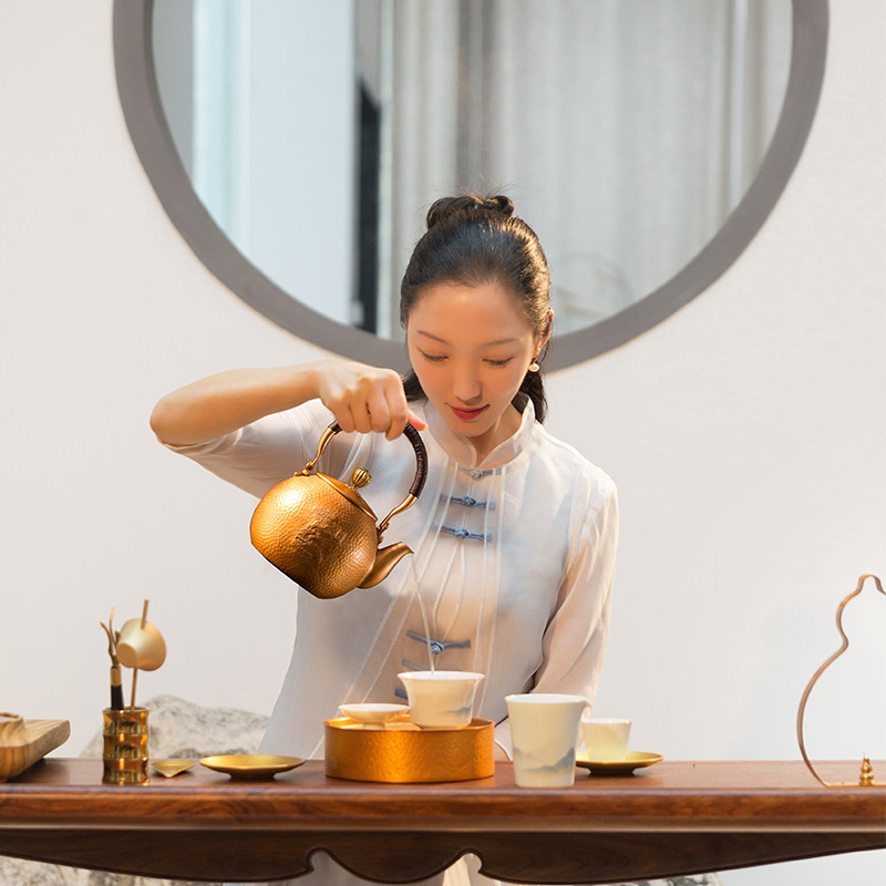Zhu Bingren copper handmade Chinese retro copper teapot tea set health teapot large kettle Xianglong pot