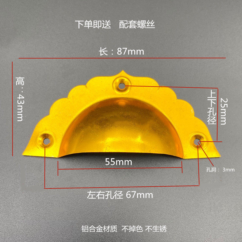 Drawer handle Chinese antique stainless steel semicircle handle lace lace half-moon shaped shell buckle hands medicine cabinet handle