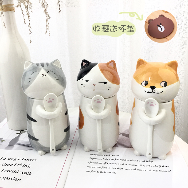 Couples cup ceramic mug with lid with spoon creative pair gift cute super cute handmade water tea cup