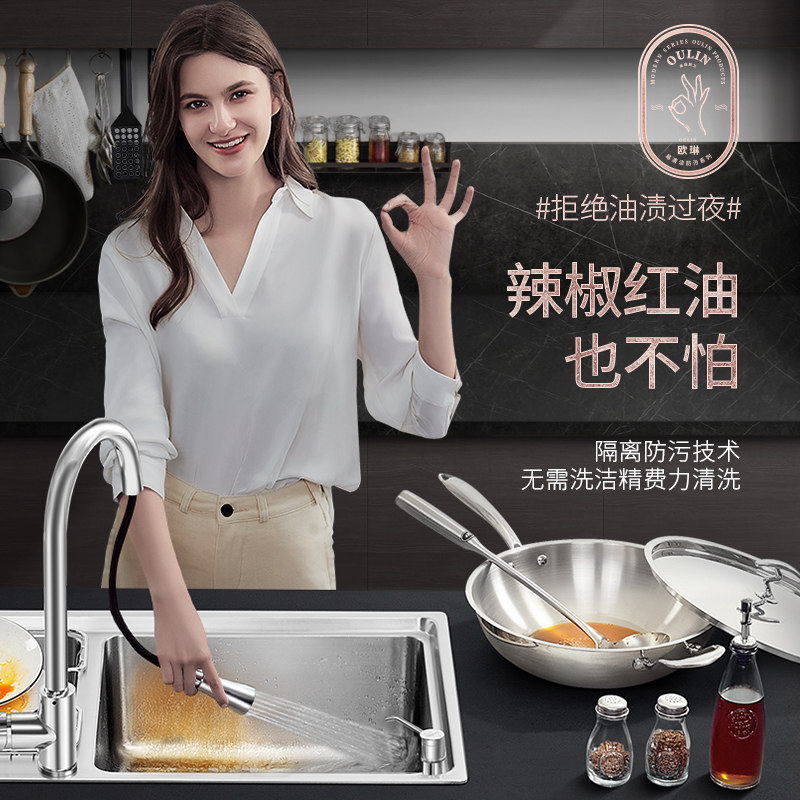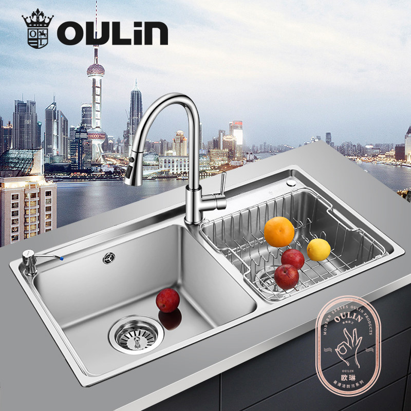 Ou Lin stainless steel sink Kitchen 304 stainless steel wash basin is not afraid of oil easy to clean sink double tank package