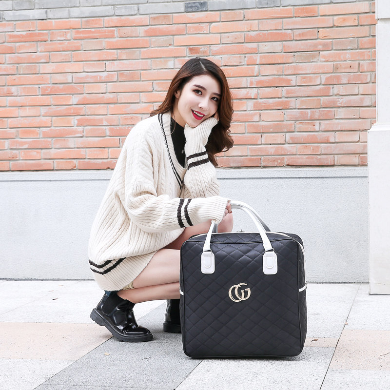 New portable travel bag men's and women's luggage bag Student duffel bag large capacity short trip bag solid color travel bag