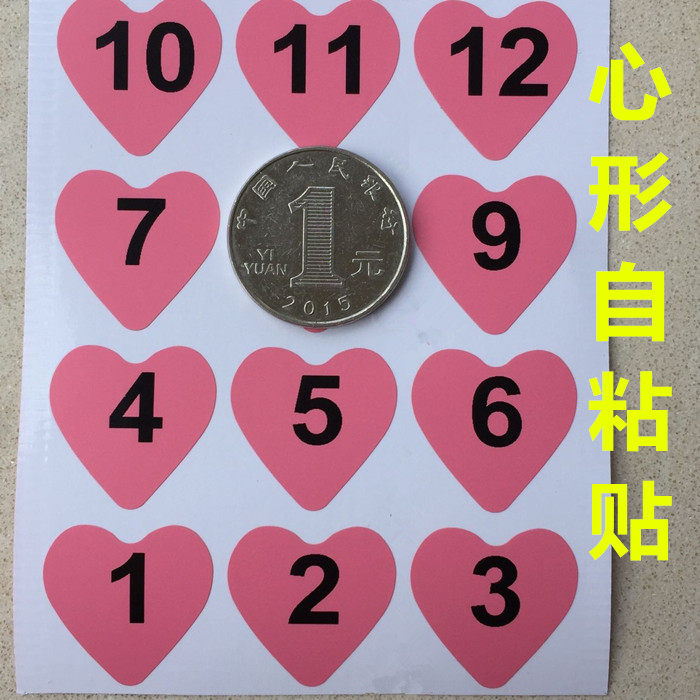 Waterproof Loving Shape 1-50 Pink Blue Color Number Wine Cup Teacup Mark Number number stickers 1-99