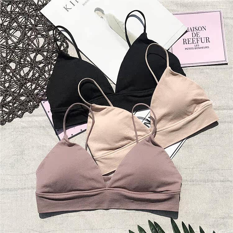 No steel ring slim fit minimalist comfort Breathable Fine Shoulder Strap Vest Sleep Harness Triangular Cup Lingerie Bra Woman