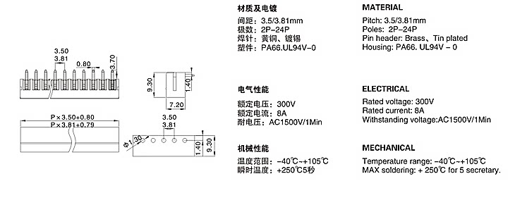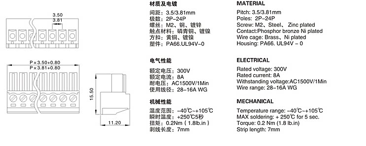 Plug type PCB terminal block KF2EDG-3 81 15EDG-3 81MM straight pin curved pin 2P-16P
