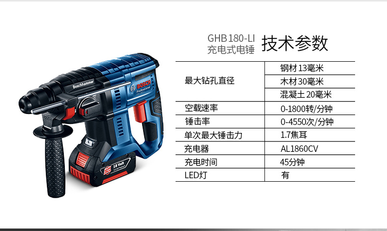 Bosch Power Tool Multi - functional hammer drill shock drill GBH 180 - LI four - pit lithium charging three - use hammer