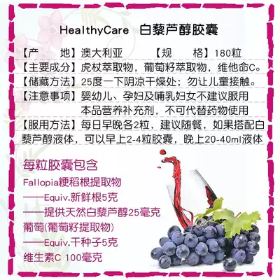Australia Healthy Care hc resveratrol capsules 180 grape seeds with oral liquid compact