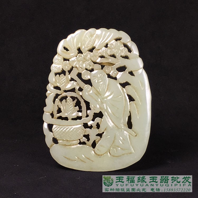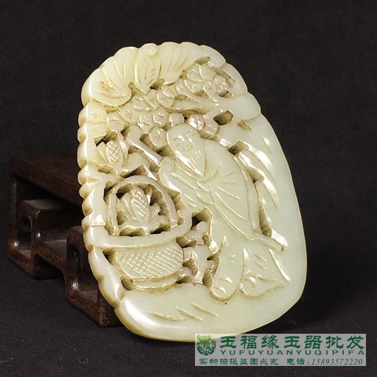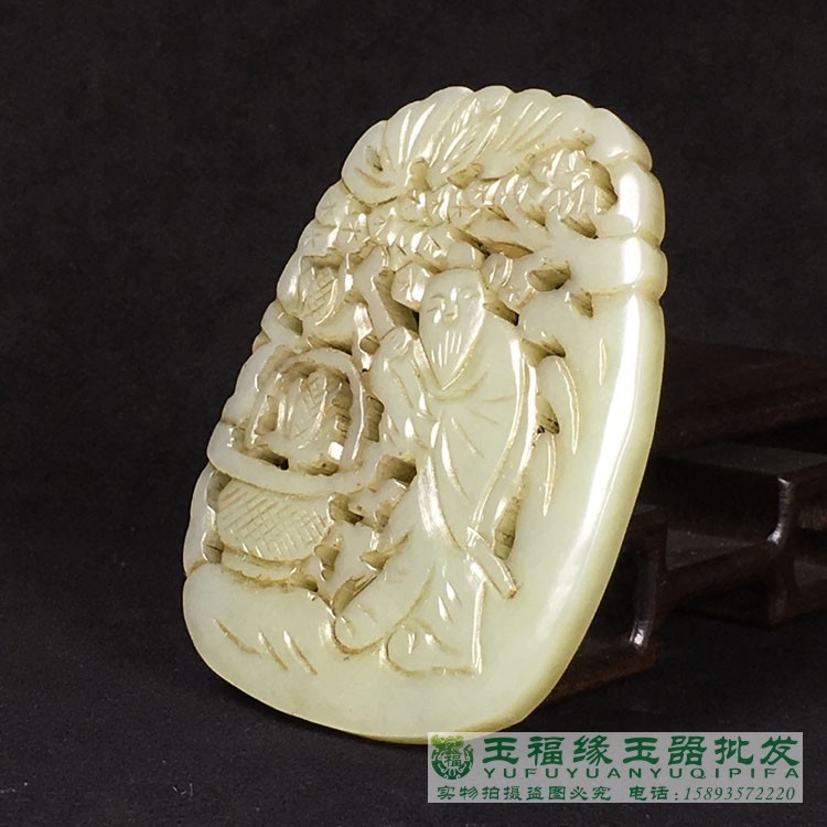 Antique sculpture and Tian Yu figure pendant double - sided hollow carvings with perfect jade oil and fine lubrication