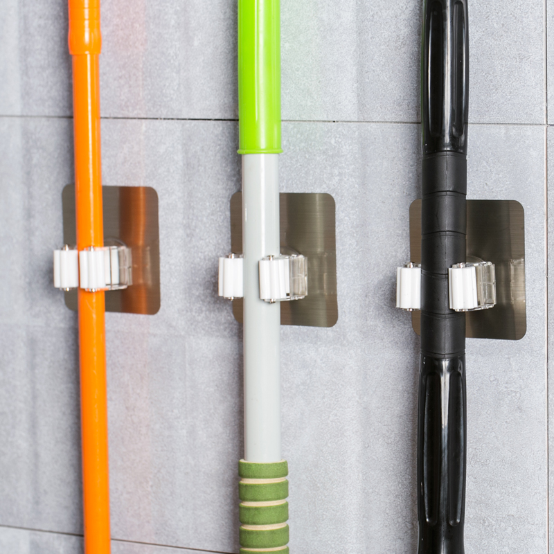 15-pack Transparent hooks 8-pack brushed metal hooks 2 mop racks Row mop racks