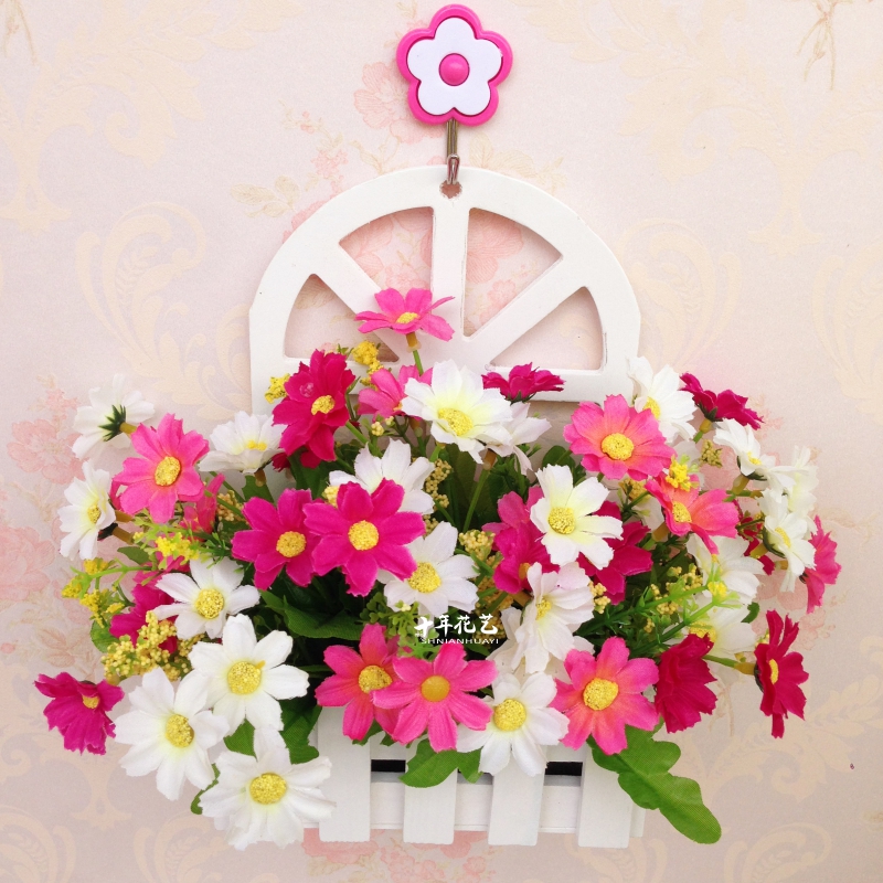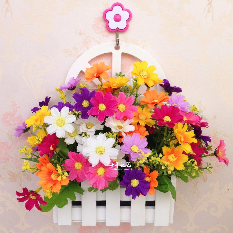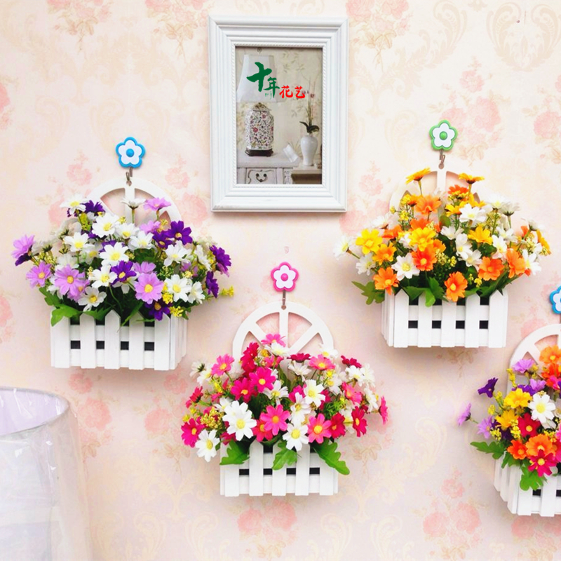 Wall hanging fence set simulation fake flower hanging basket wall decoration hanging basket indoor wall hanging decoration wall decoration flower art