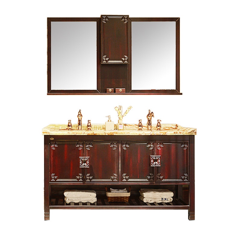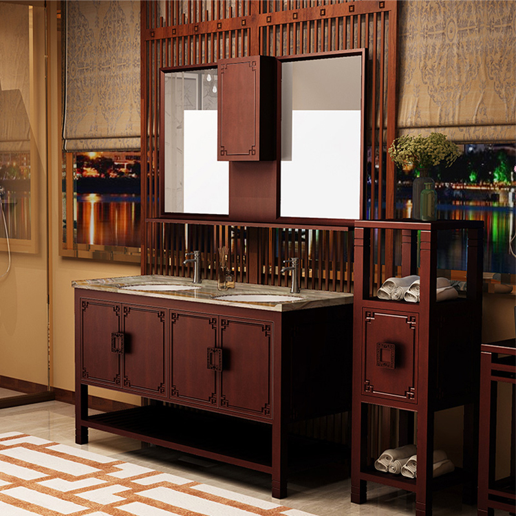 New Chinese Classical Bath Room Cabinet Composition Solid Wood Bath Cabinet Dressing Room Floor Washing Terrace Oak Washbasin Cabinet