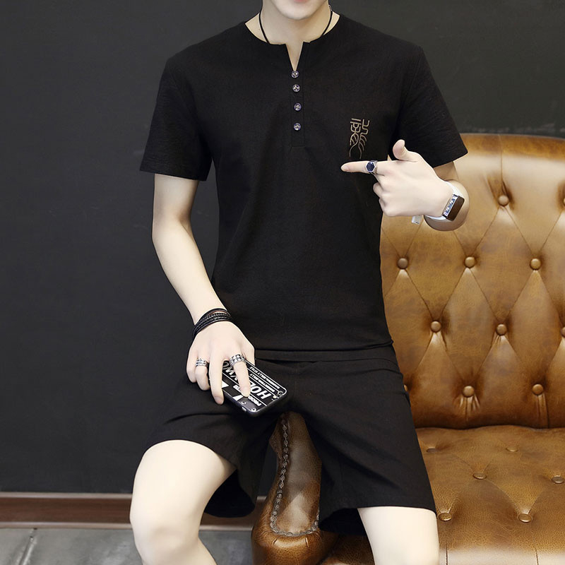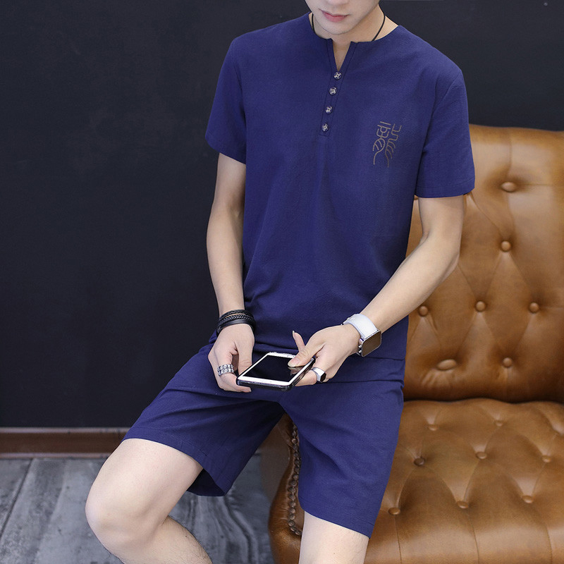 Men's suit 2021 new Korean version trendy summer clothes short sleeve casual cotton linen dress linen with a set
