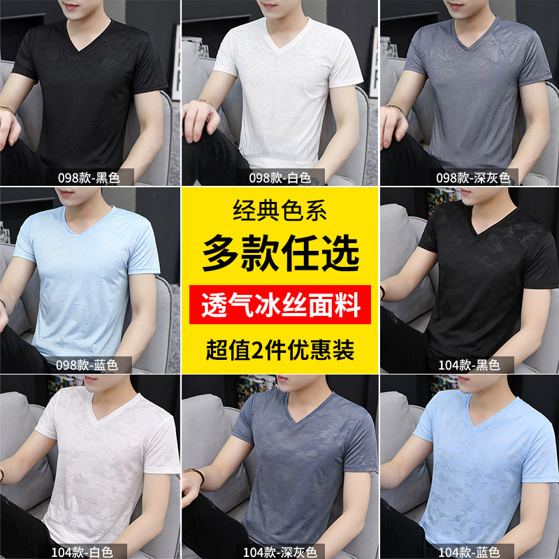 2 2 pieces) Ice-wire V-collar T-shirt men short sleeves 2022 Summer new workout speed dry T-shirt slim fit breathable blouse