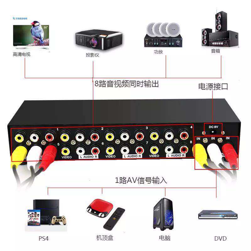 Fengje progress to eight av film dispenser av signal extension wire onboard box TV branch audio 1 minute 8