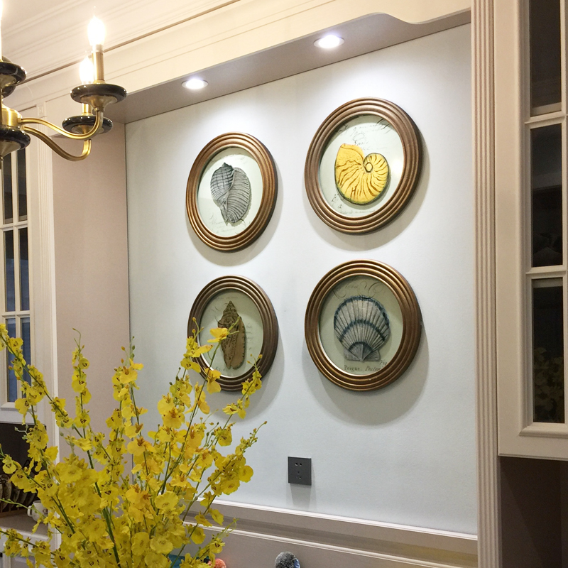 American dining room wall decoration Entrance round hanging painting shell conch decoration American living room decoration
