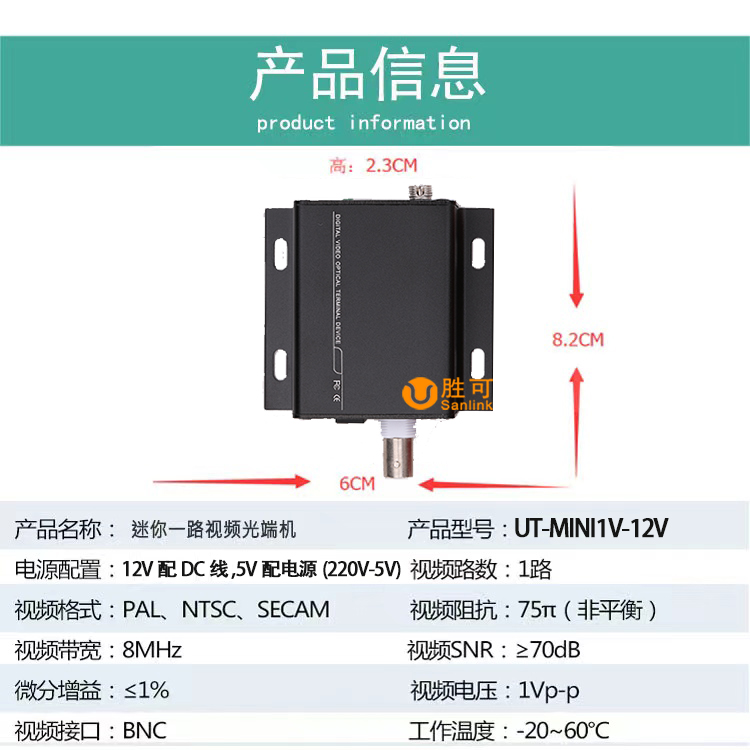 12V film optical transmitter and receiver small head can be loaded with gun machine ball machine analog BNC coaxial transoptical fiber transceiver