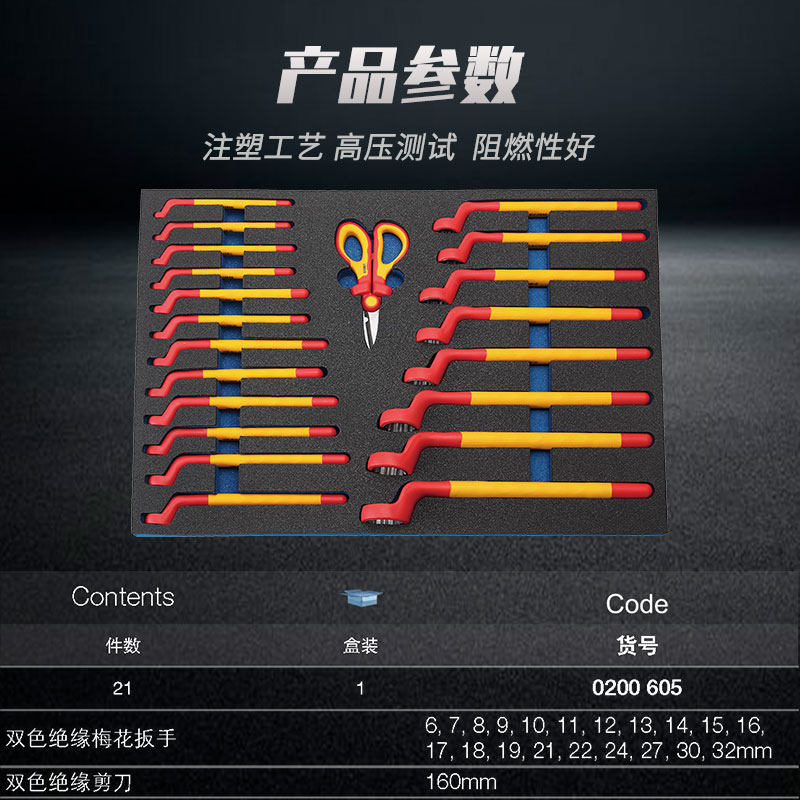 Booher Treasure Tool 21 Pieces VDE Insulation Plum Wrench Set Sleeve Insulation Tool Suit 0200605