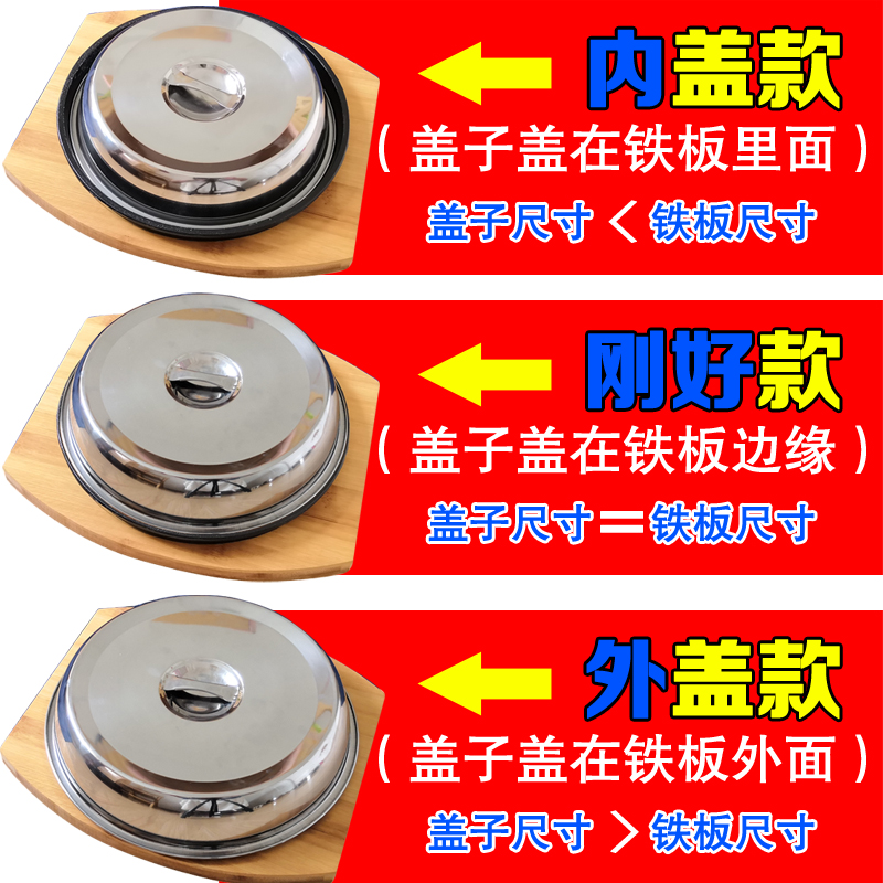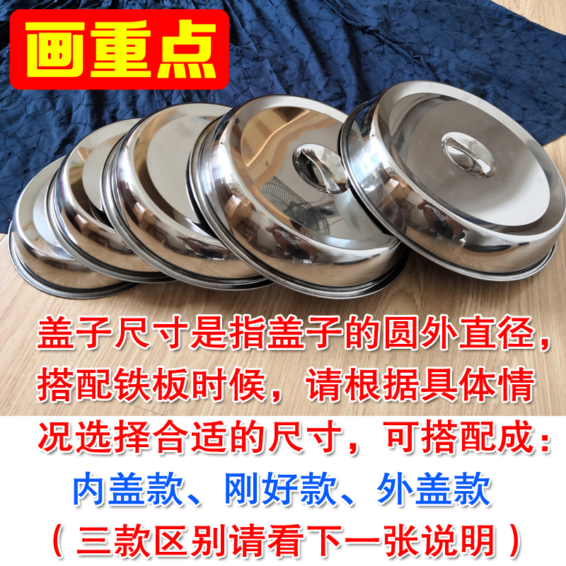 West Restaurant Iron Plate Steak Lid Iron Plate Burning Special Cover Cast Iron Round Lid Stainless Steel Thickened Home Grill Pan