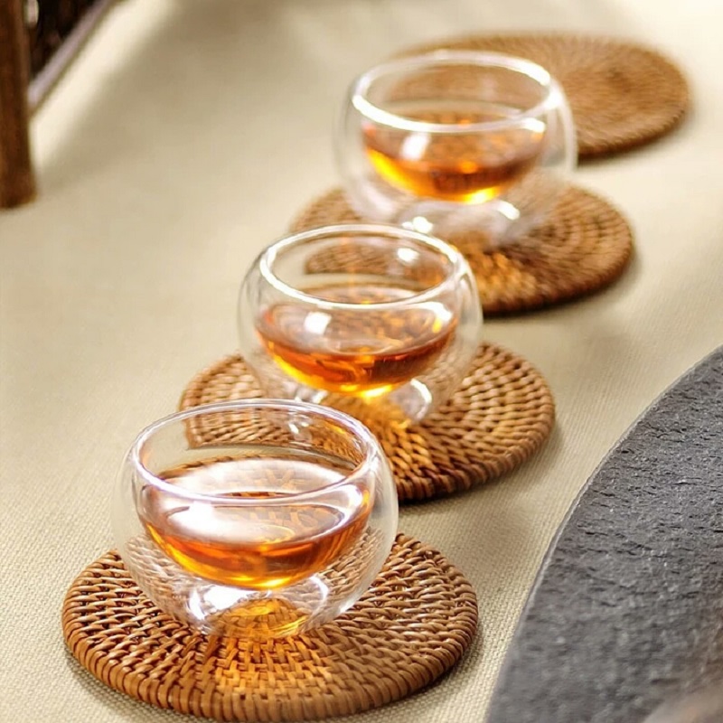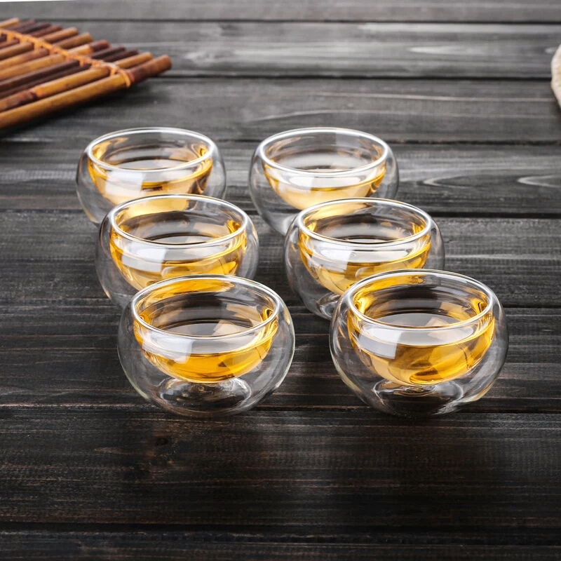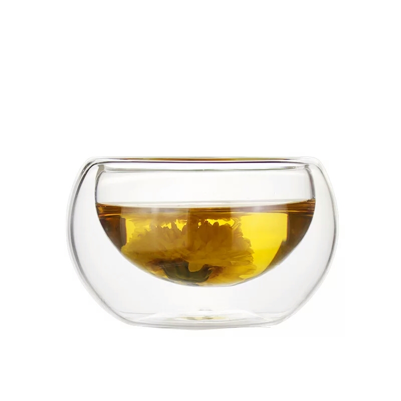 Double glazed glass cup handmade heat-resistant glass tea cup single small tasting tea cup Kung Fu tea tea Kung Fu Creativity Trumpet Tea Cup