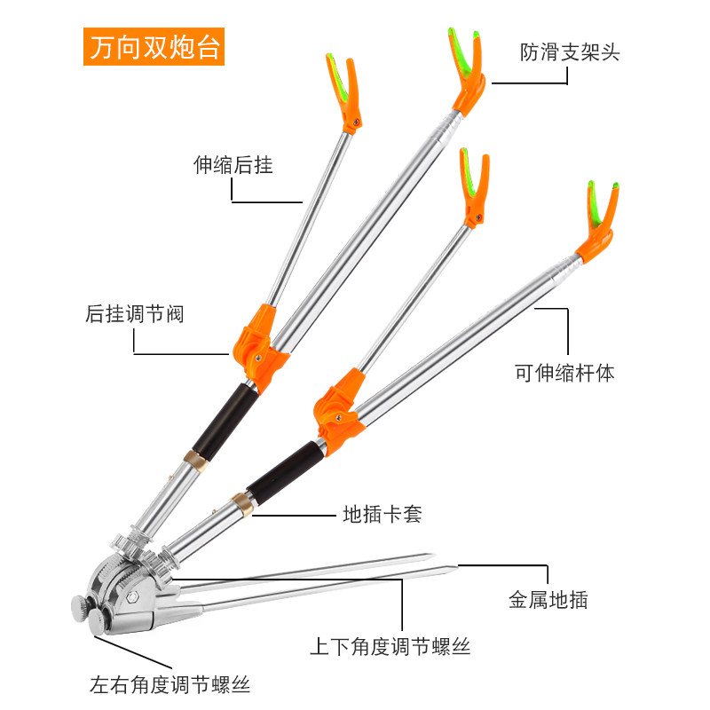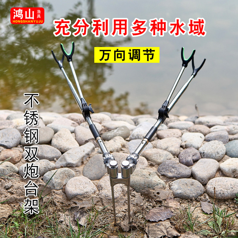 Stainless steel universal double battery bracket ground plug fishing rod bracket Double rod bracket Rod frame Rod frame double bracket