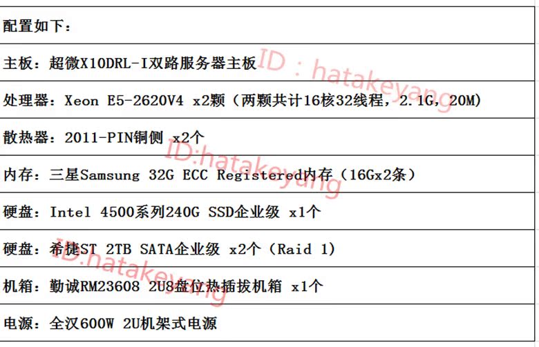 Assembly Server Super Micro X10DRL-I 2620V4*2 16G RECC*2 2T*2 RM23608 600W