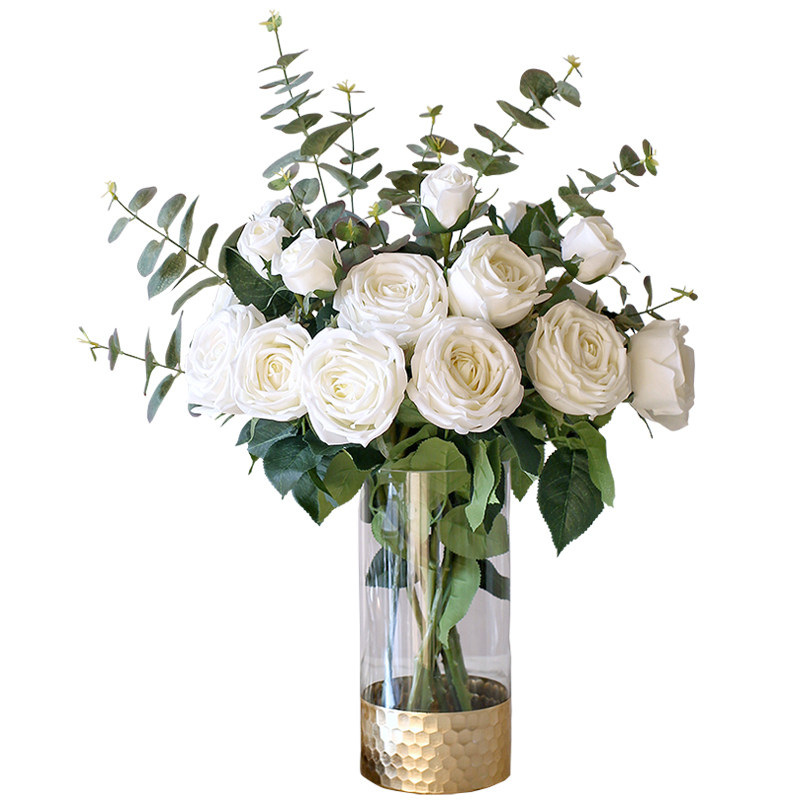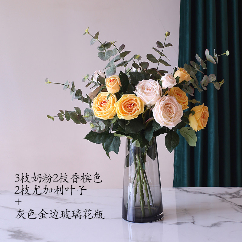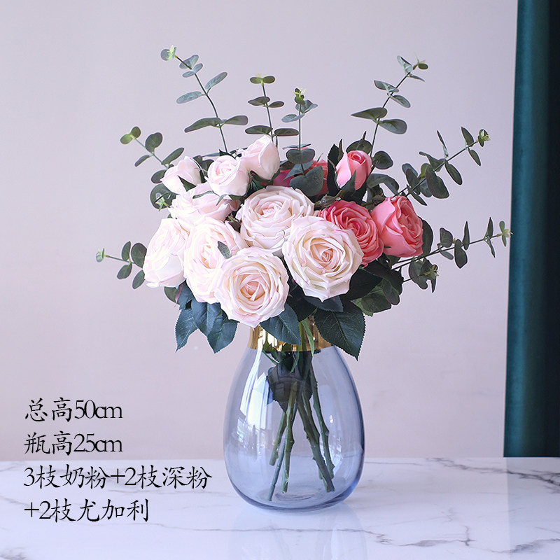 One branch of white with 3 flowers milk pink one branch of 3 flowers light pink one branch of 3 flowers deep pink one branch of 3 flowers purple one branch of 3 flowers white small set (including vase)white large set (including vase)