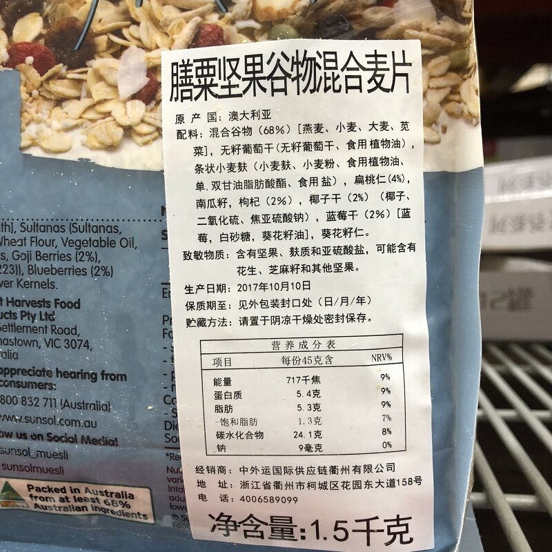 Sam Australia imported Sunsol meal millet nut grain mixed cereal 1 5kg fresh vegetarian cereal