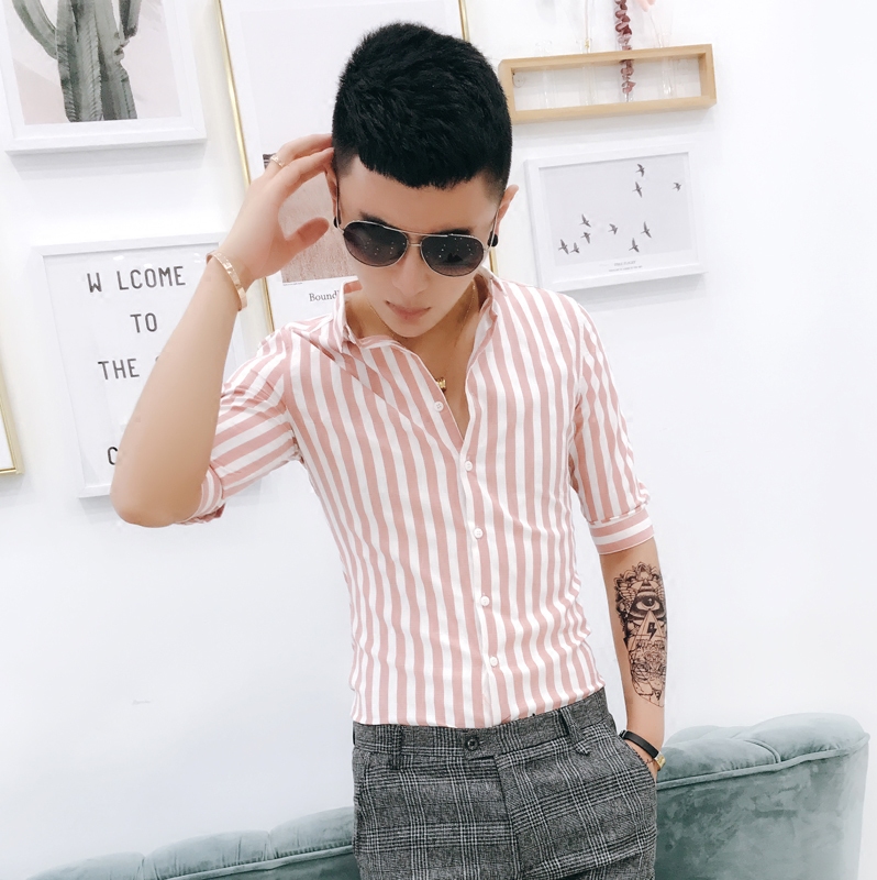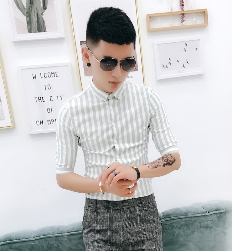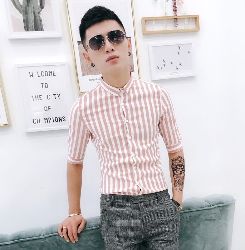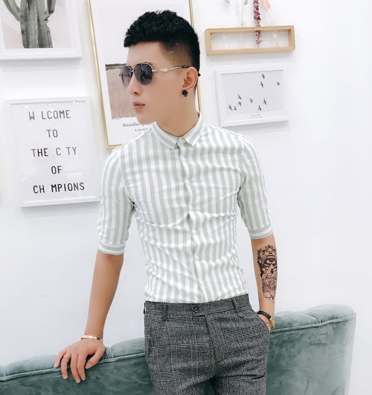 New summer shirts for men short sleeves slim thin Korean fashion trend casual handsome 5 minute sleeve striped shirt