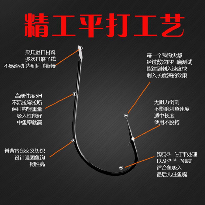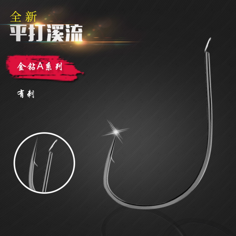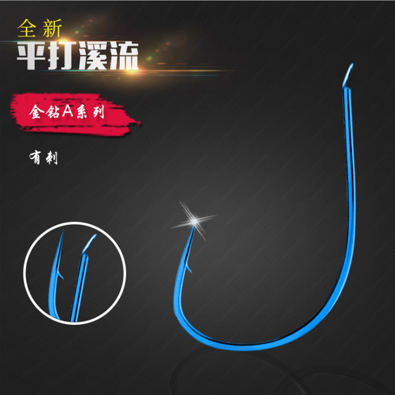 Imported flat hit ultra-thin stream fishhook with barbed black blue crucian carp thin hook long handle crooked mouth high carbon steel fishing needle