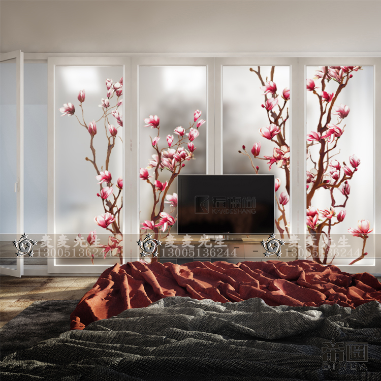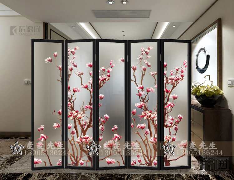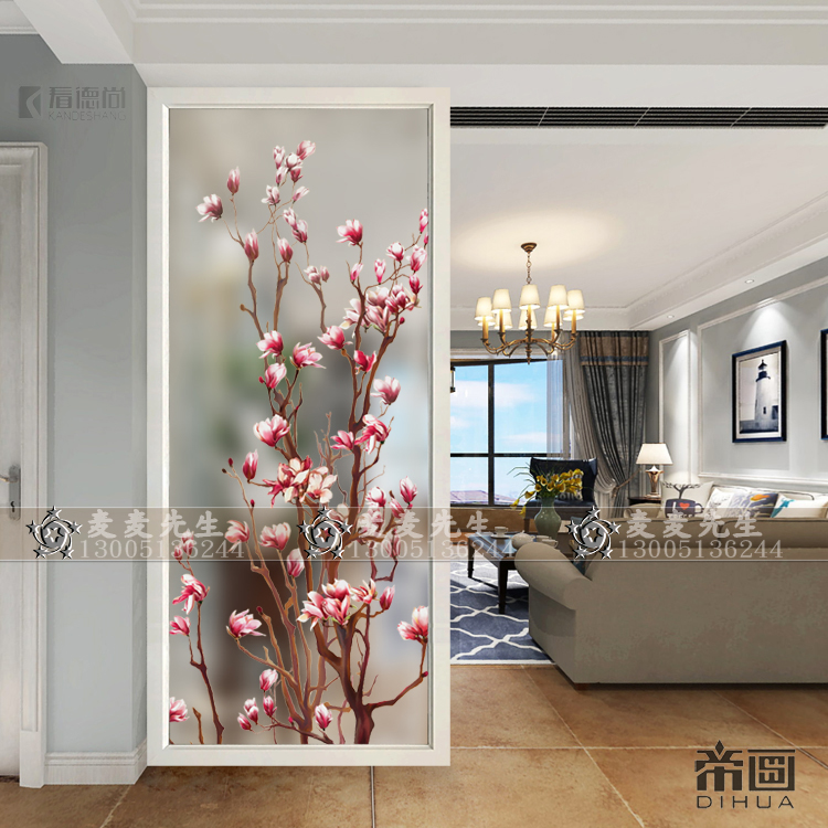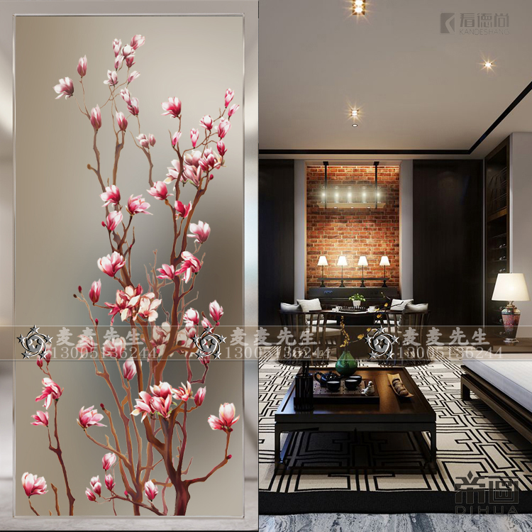 Minimalist modern art glass screen partition decoration modern living room Entry into the house Hyun Guan Frosted Euphotic Crafts Peach Blossom