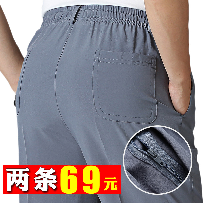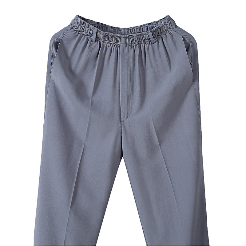 Middle-aged pants male dad outfit elastic waist summer ultra-thin ice silk sweatpants Large size loose old man slacks