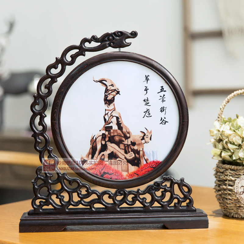Guangdong embroidery Guangzhou embroidery hand embroidery ornaments Guangdong characteristics hand letter gifts five sheep Kapok double-sided embroidered screen