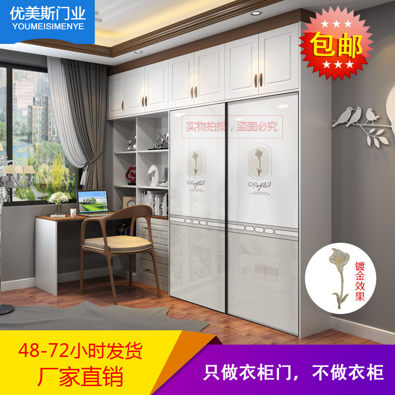 Nordic wardrobe sliding door custom modern simple custom solid wood gold-plated wardrobe door custom push-pull sliding door