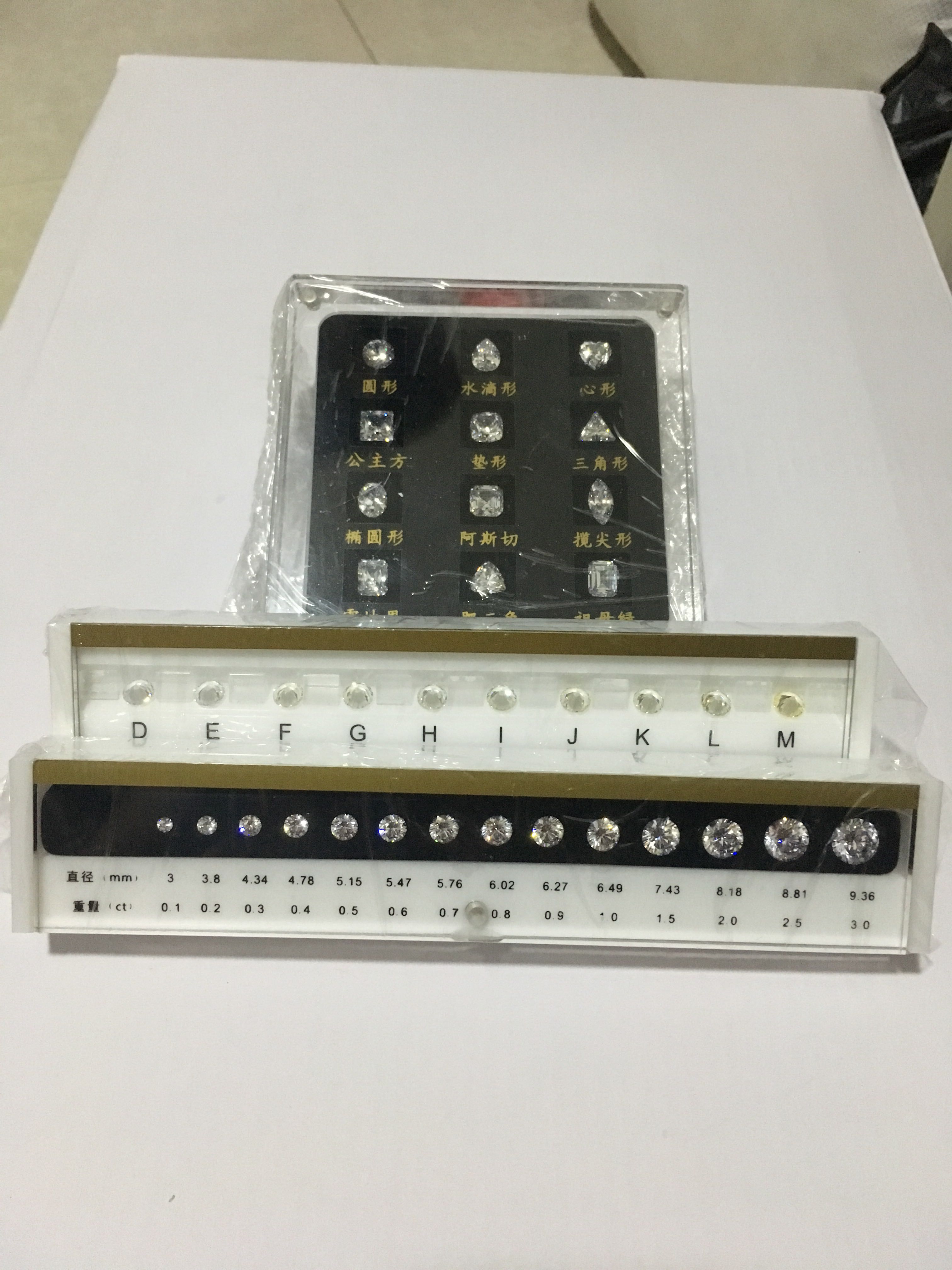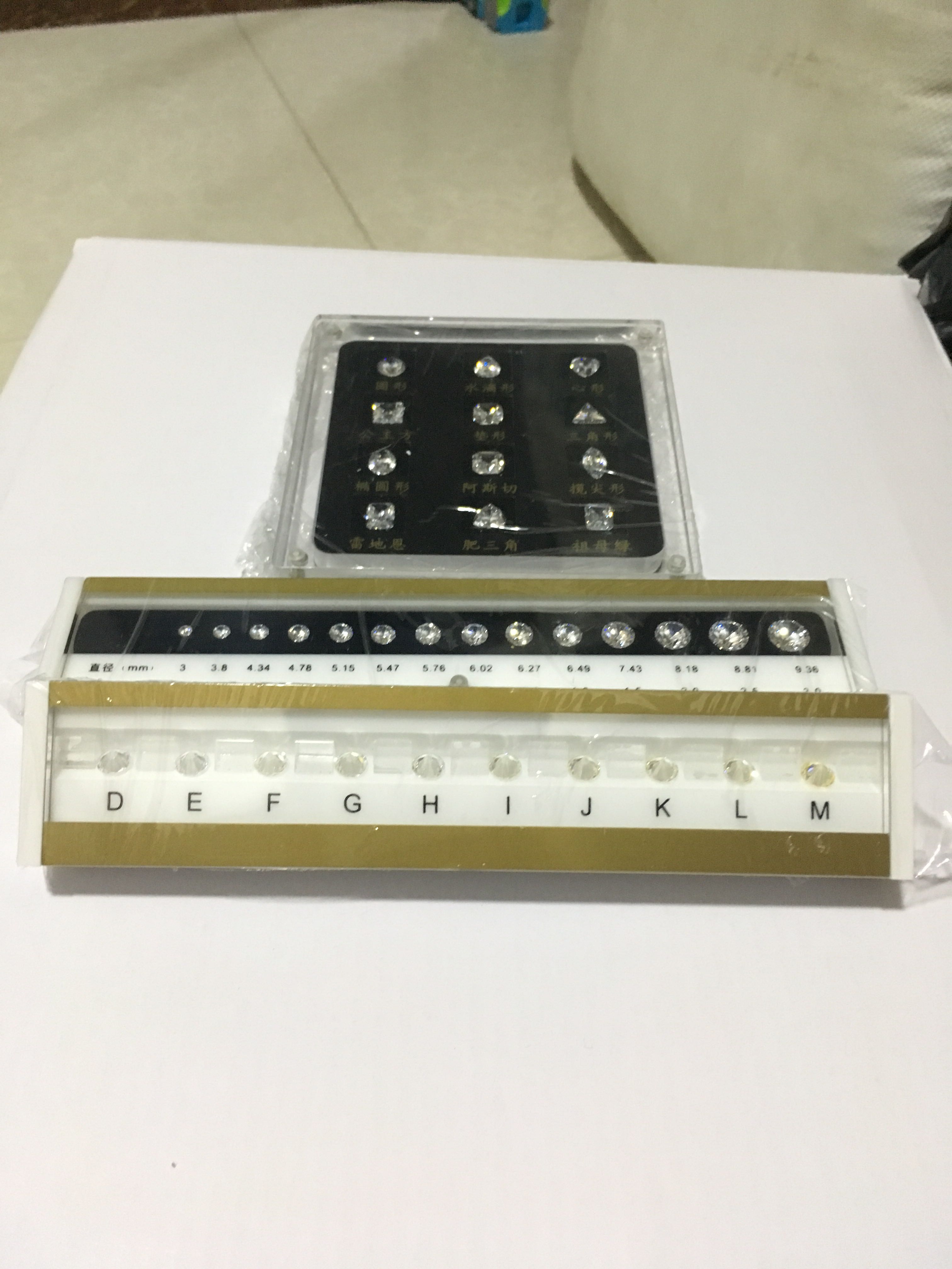 Standard zircon colorimetric stone compared to heavy stone nude drilling size weight identification diamond heft grade examination reference tool
