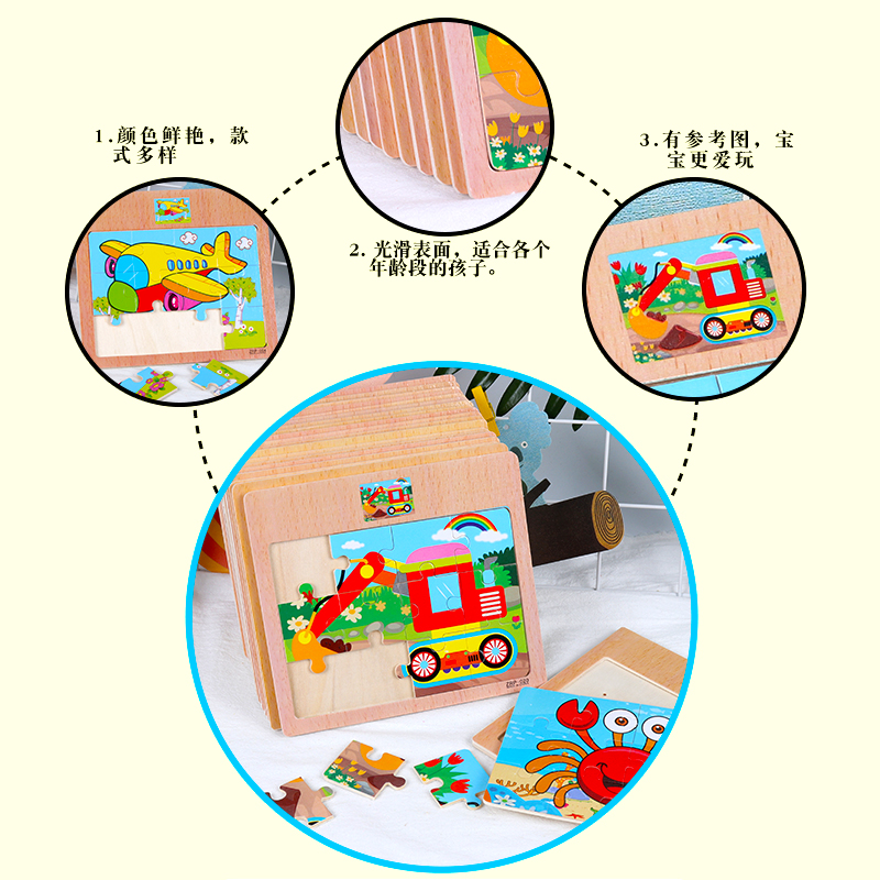 12 pieces of wooden children's three-dimensional puzzles 1-3-6 years old early education benefit intelligence development toys boys and girls building blocks
