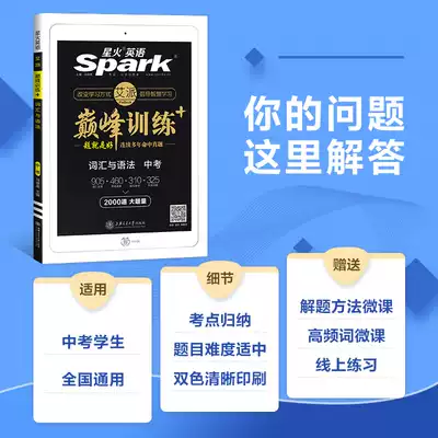 2022 edition Spark English Chinese test vocabulary and grammar 2000 questions large number of questions combination training National edition Junior high school ninth grade upper and lower volumes Peak training Junior High school third English grammar phrases vocabulary intensive practice test repetition