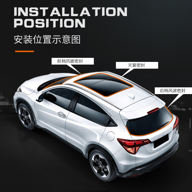 Automobile panoramic sunroof glass sealing tape front and rear retaining glass sound insulation strip waterproof and dustproof universal leakage modification