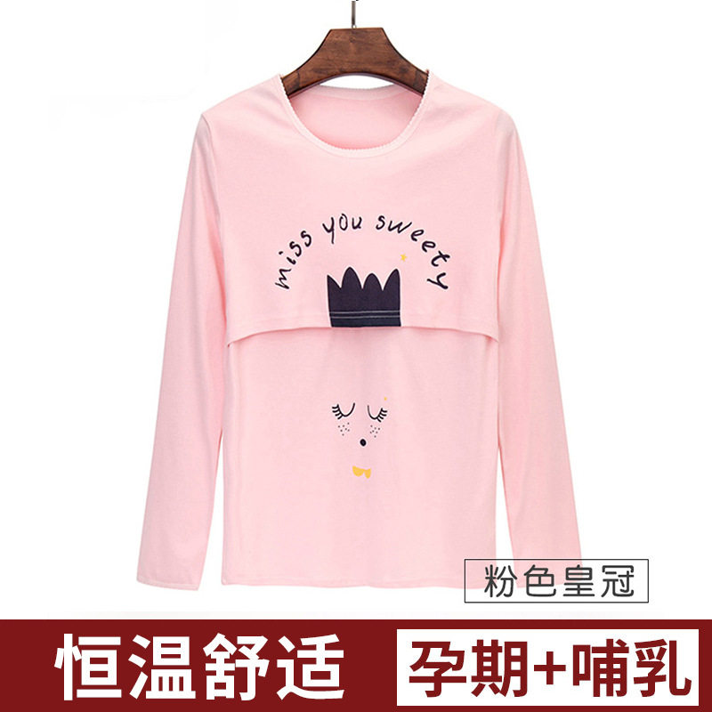Pregnant woman pure cotton suckling autumn clothes postpartum single-piece lactation blouse 100% full cotton sweatshirt thin and warm pyjamas sanitary clothes