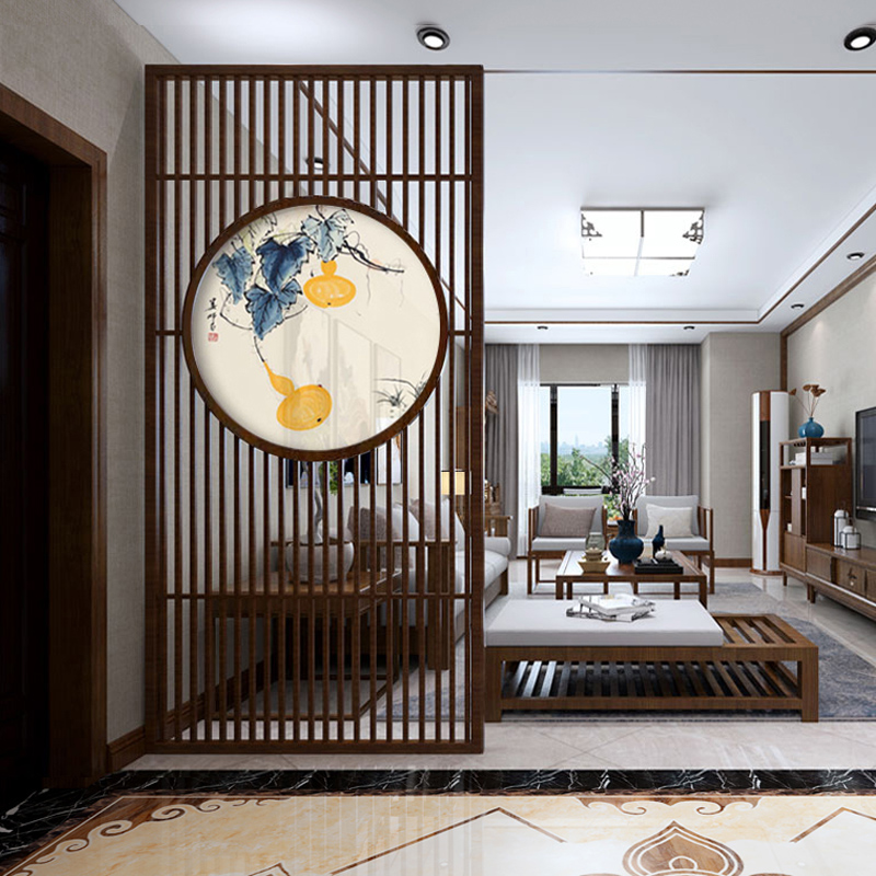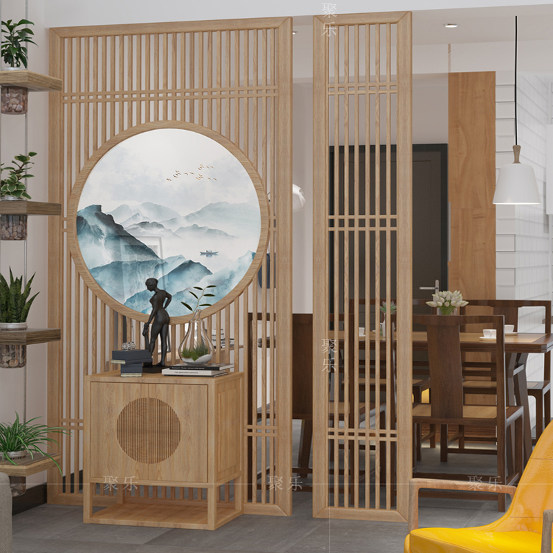 Solid wood screen partition living room new Chinese entrance entrance modern simple hollow roof restaurant hotel wooden seat screen