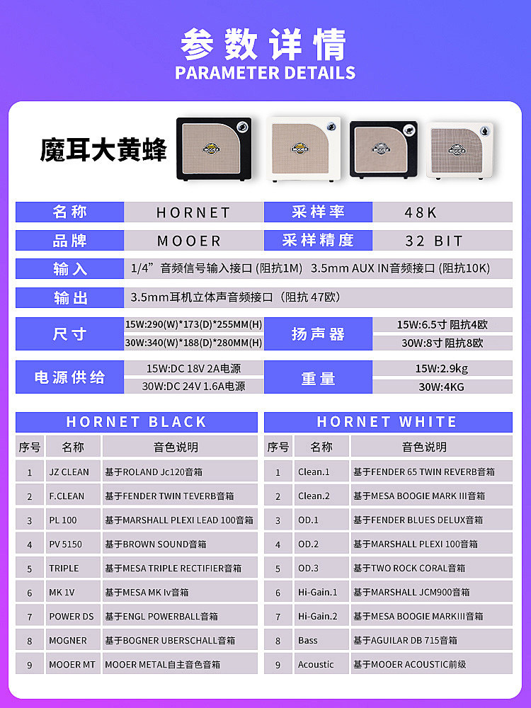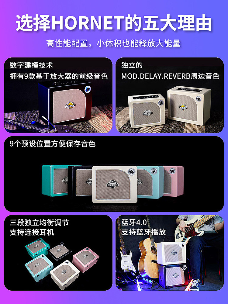 MOOER Magic Hornet Black White Hornet Digital Modeling Sound Electric Guitar Bluetooth Speaker 15W