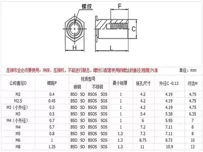 BSOS-M2 5M2 stainless steel 304 blind hole riveting nut column 3-20 hexagonal sheet metal sheet riveting column stud