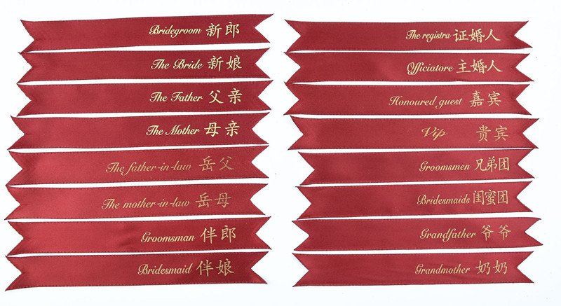 No Flowers Wedding Wine Red Champagne Wedding Bride groom Best man Bridesmaid Corsage Wrist Flower Note Streamer