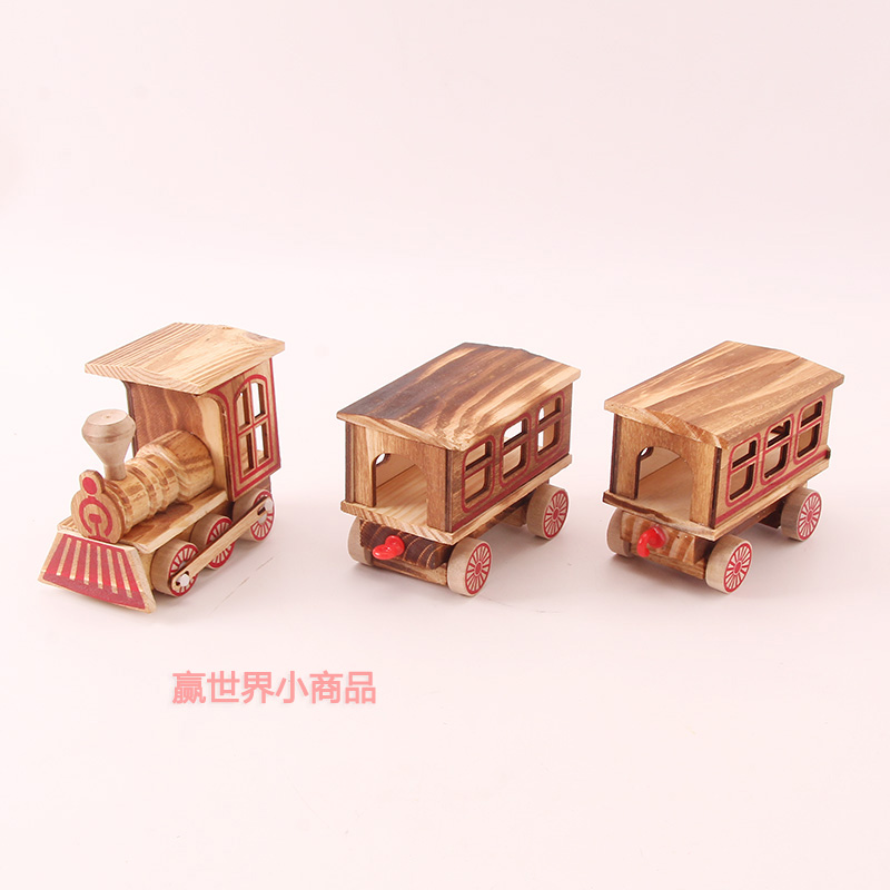 Wooden craft gift ornaments locomotive model three train ornaments simulation furniture wooden ornaments creative home accessories