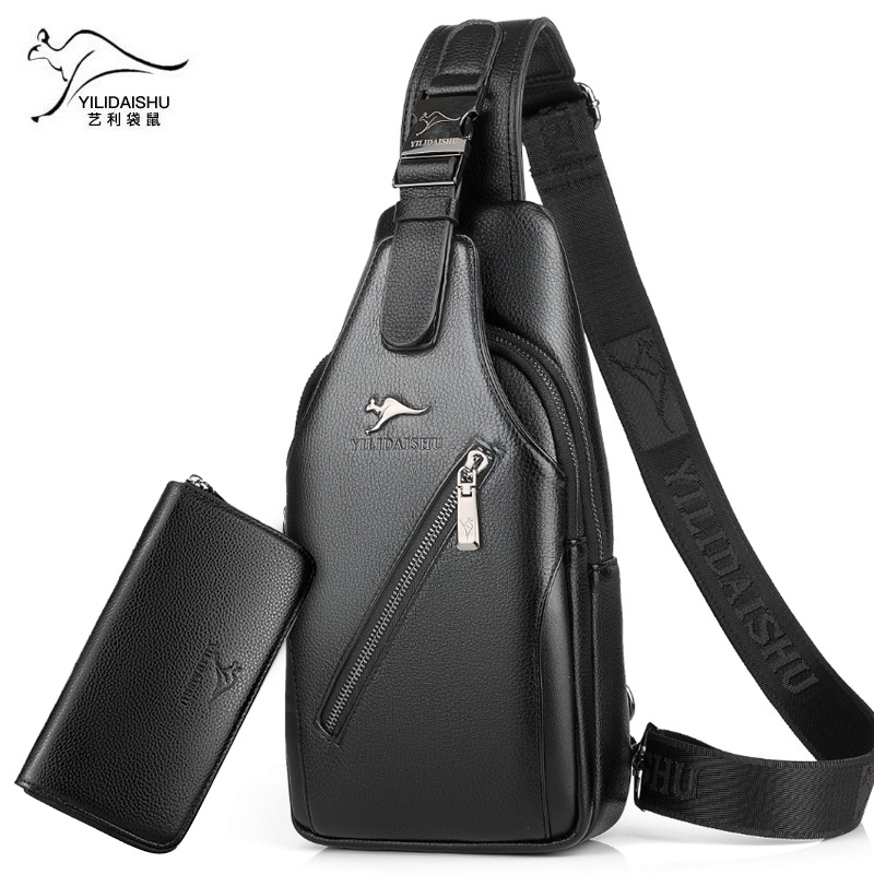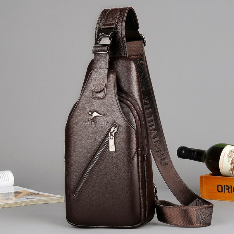 Kangaroo leather chest bag men's single shoulder bag men's bag Korean casual new style Messenger bag top layer cowhide backpack trend