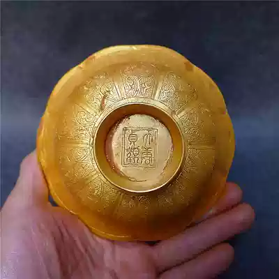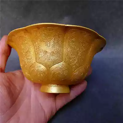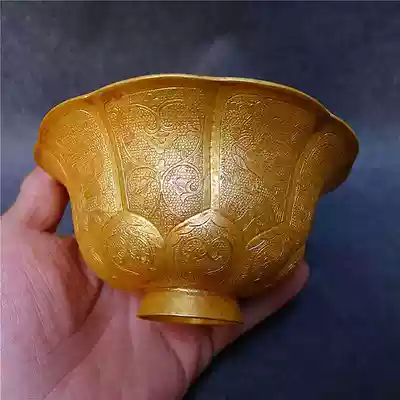 Copper carved gilded bowl antiques hot sale collection handmade pattern exquisite paste natural taste good