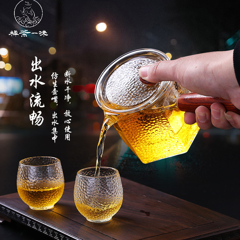 Thickened Hammer Thread Heat-resistant Glass Teapot Bubble Teapot Side Handle Filter Steam Cooking Tea Ware Black Crystal Stove Special Cooking Teapot
