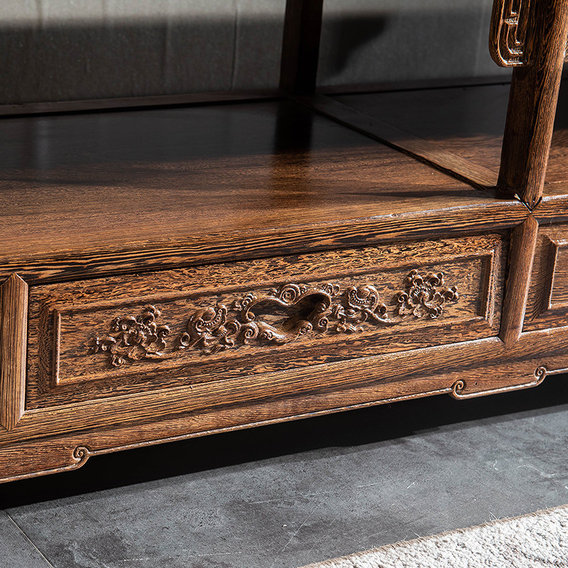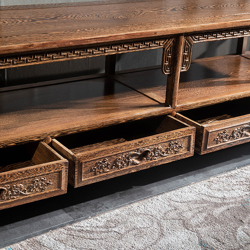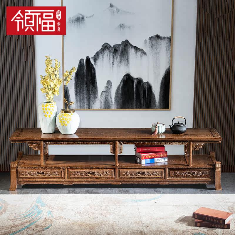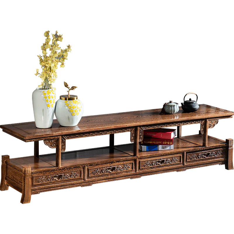 Collar Fu Solid Wood TV Cabinet Red Wood Chicken Wings Wood Audiovisual Cabinet Ground Cabinet Living-room Living-room Combination Long-Ming style Four-draw Chinese Classical