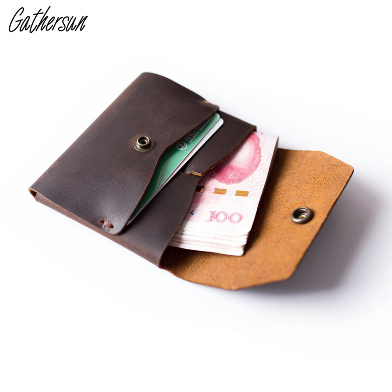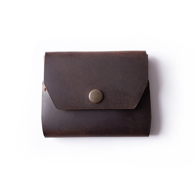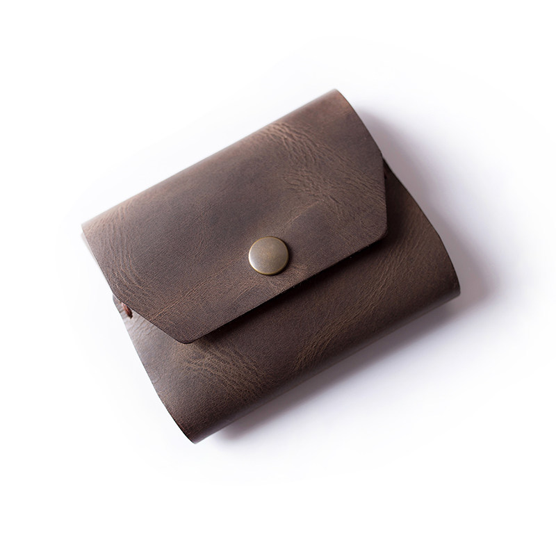 New cowhide handmade simple small wallet crazy horse leather mini short personality men and women portable coin purse